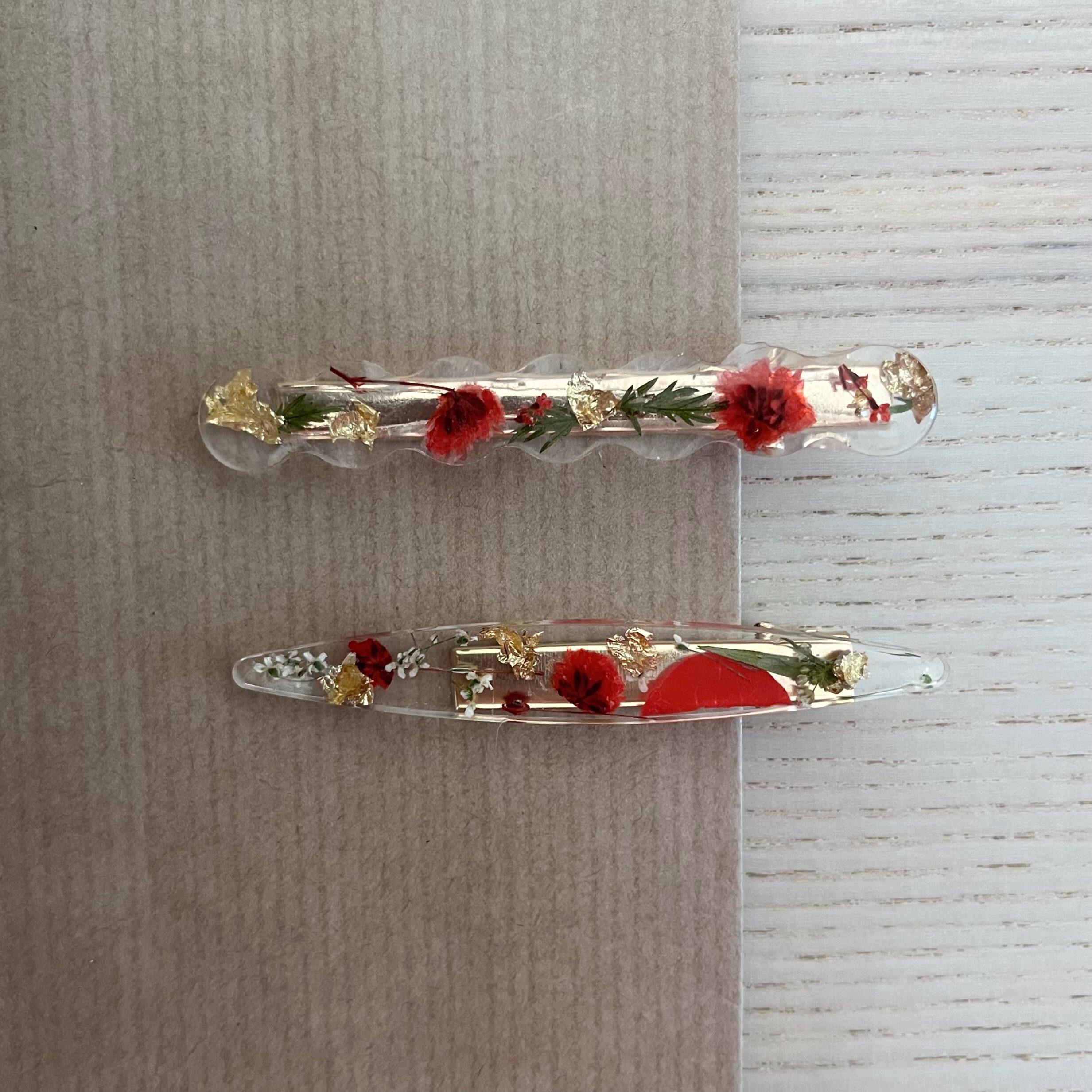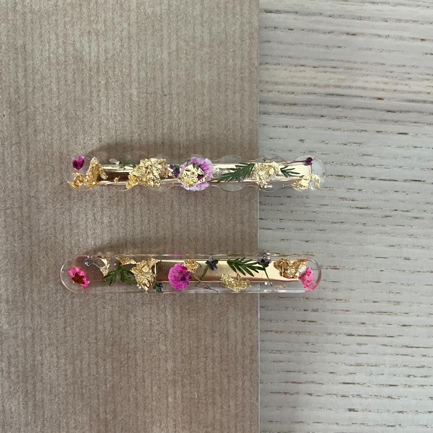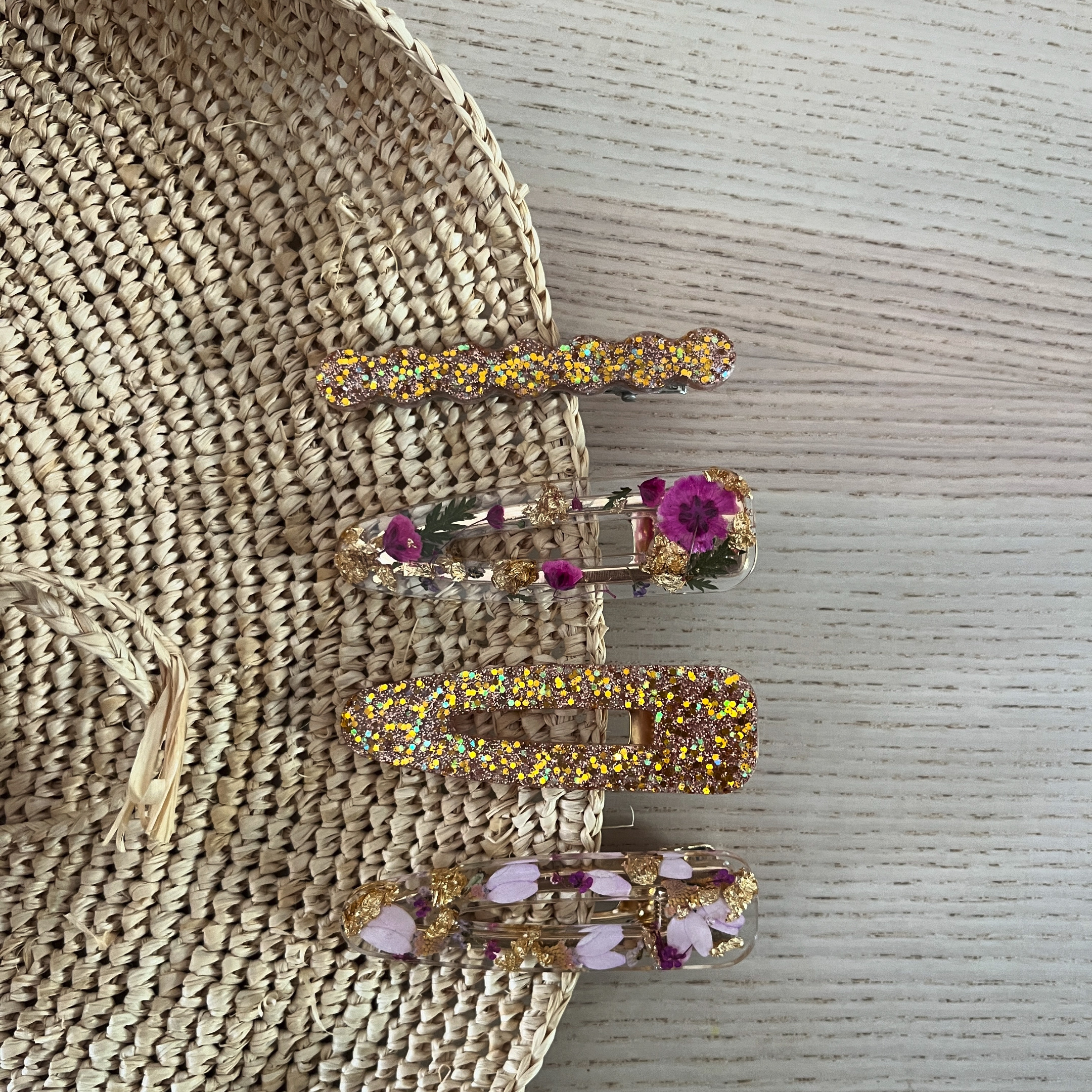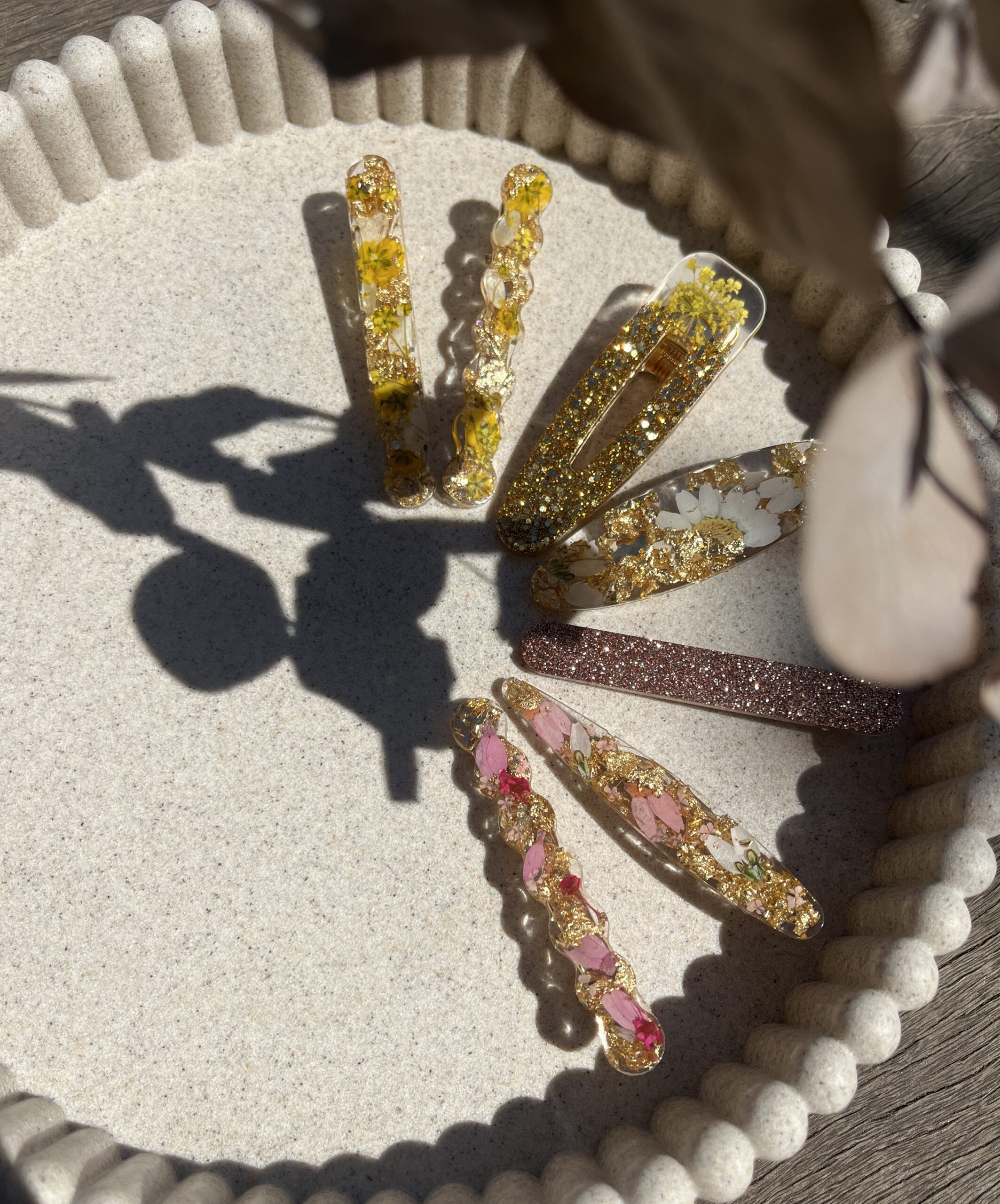 1 Barrette en résine époxy avec fleurs séchées entièrement personnalisable.