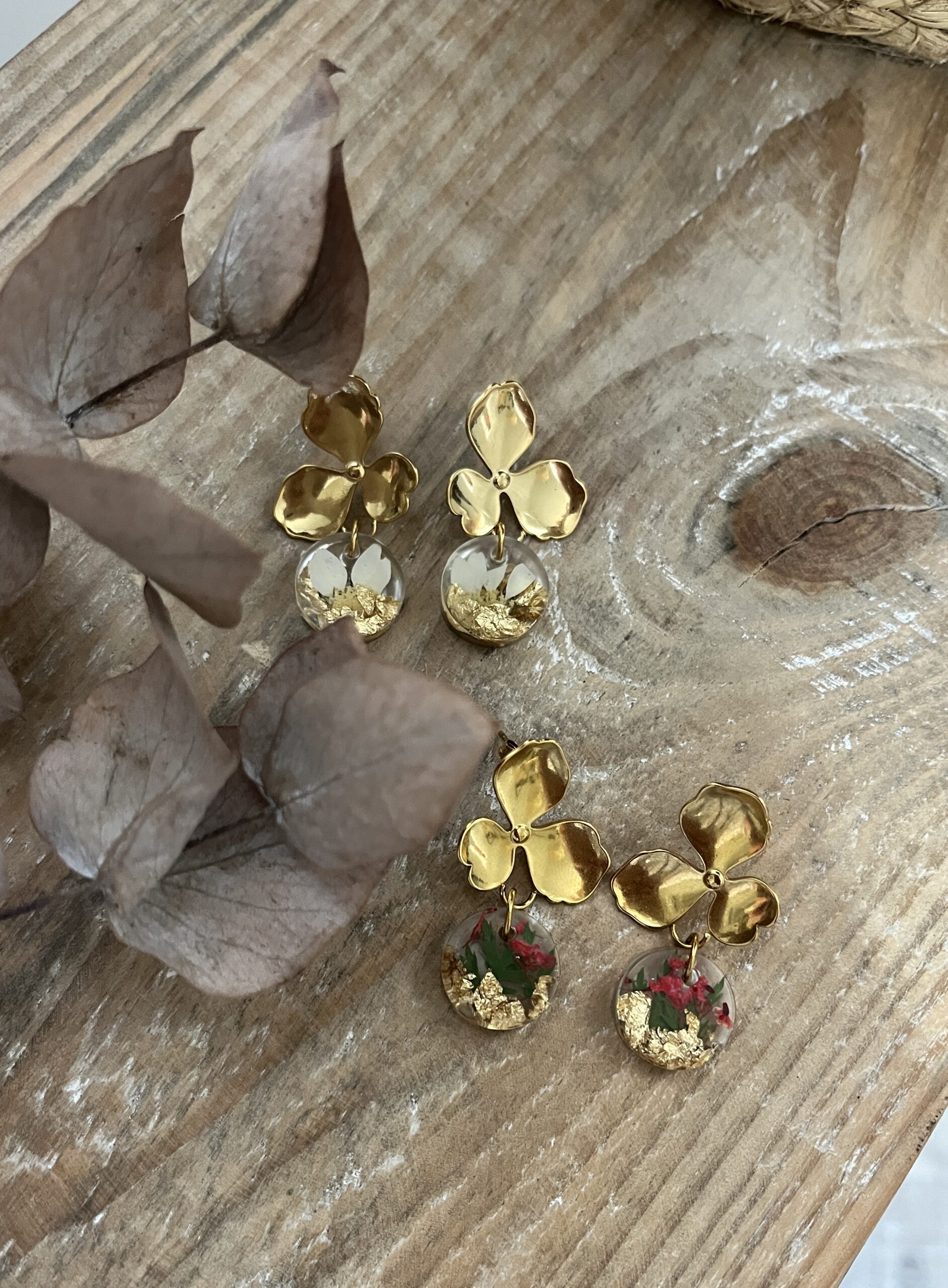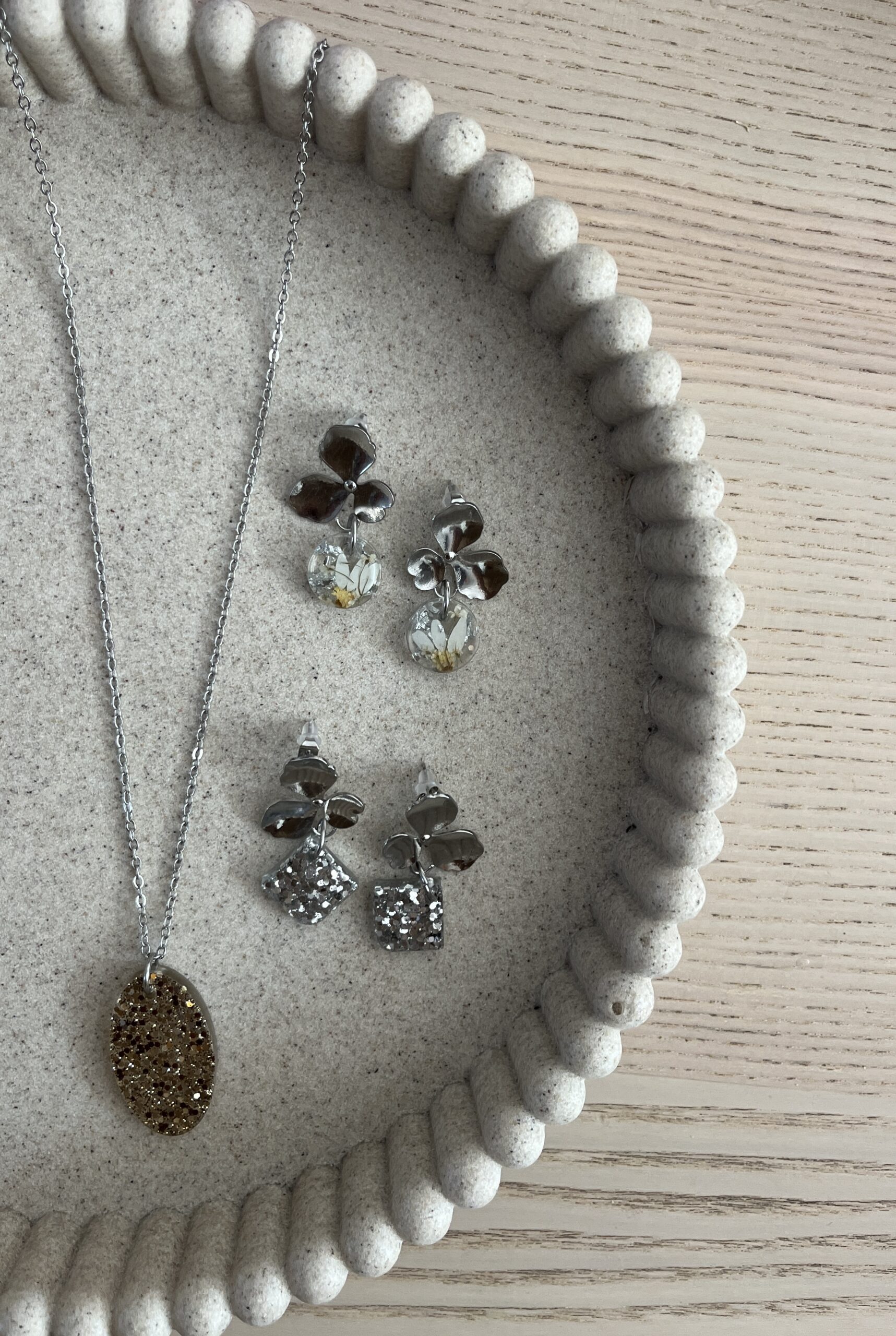 Résine époxy en forme de Fleur accompagnée de paillettes